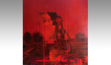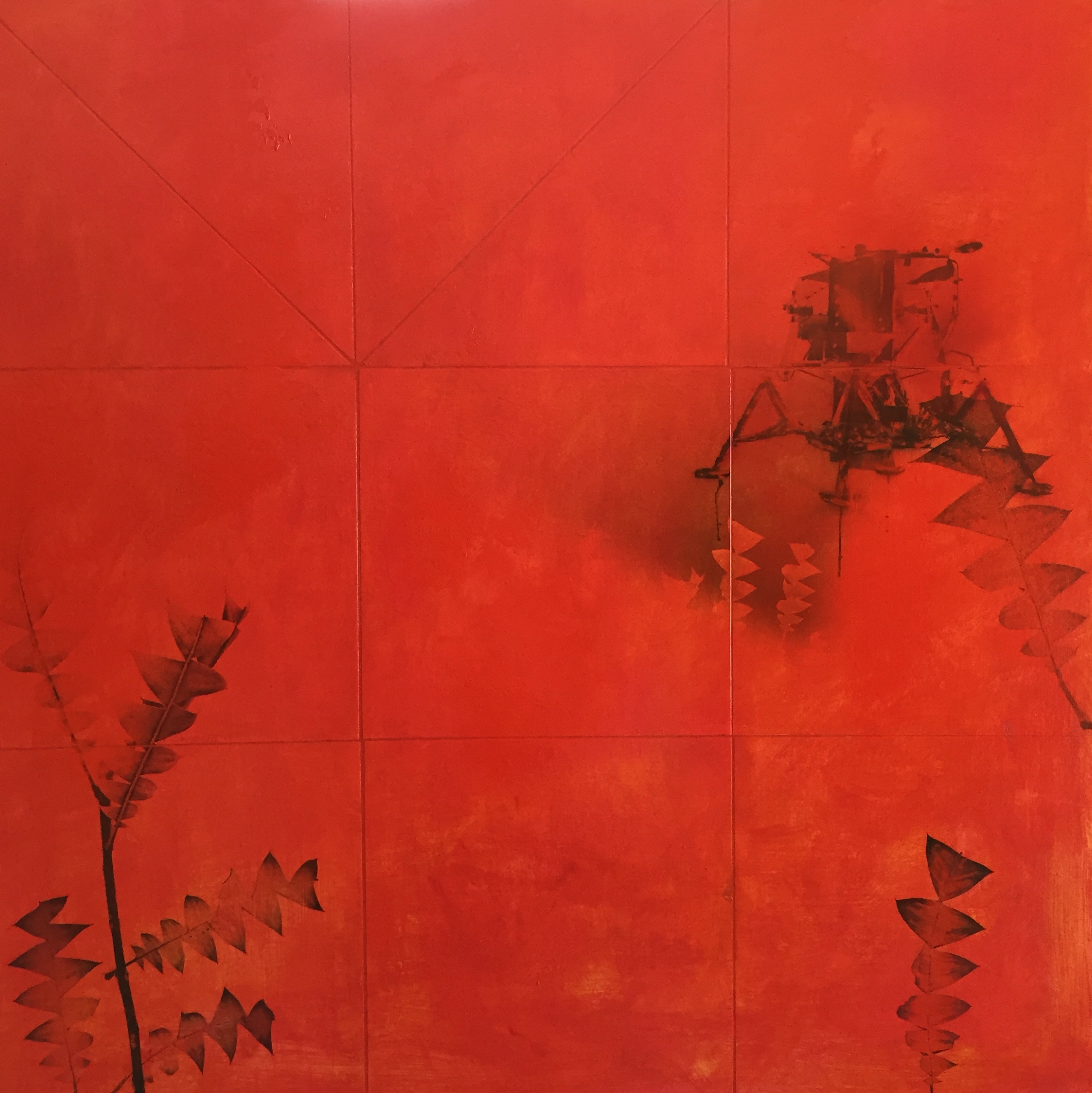 The paintings in this series titled Lunar Module in gentle ruin, mark my families 50th anniversary since arriving in Australia. A time when the immigration milieu was vastly different to now; when under-population was of serious concern, in contrast to today’s anxious need for Border Protection.