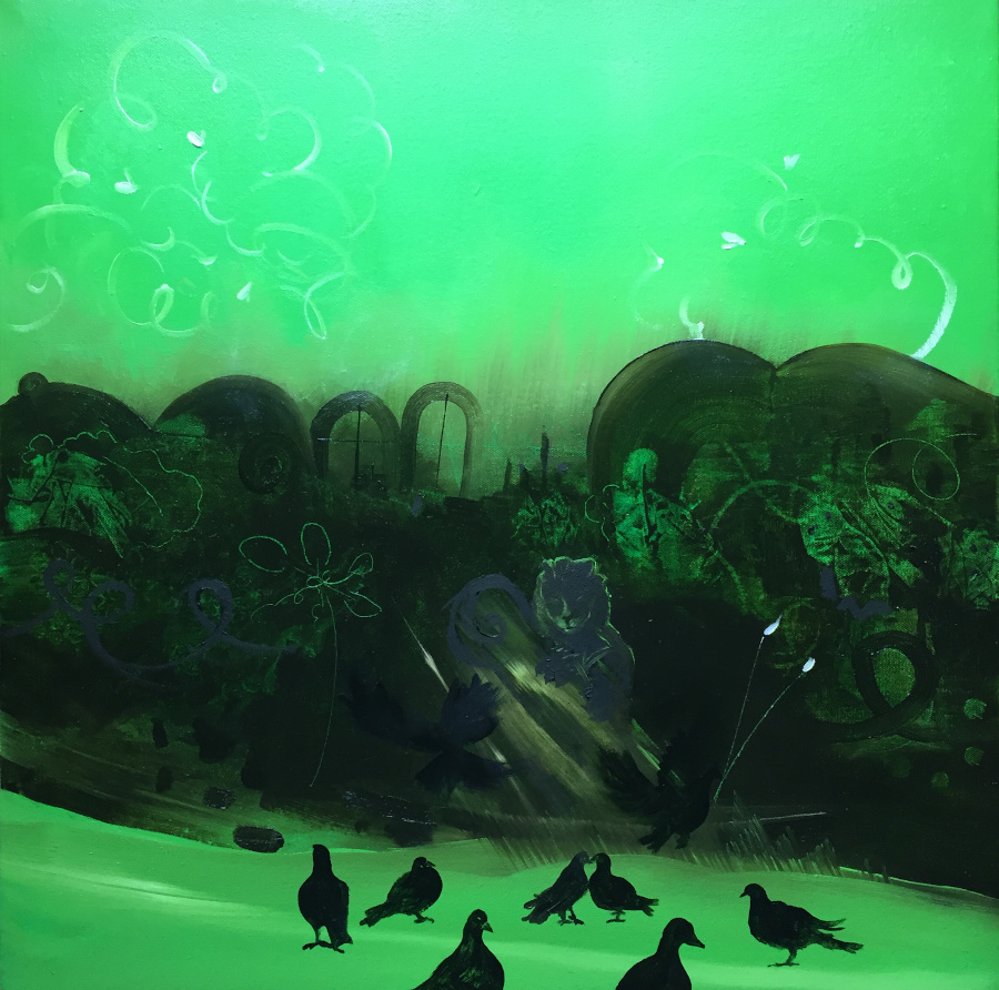 Like slides from a magic lantern, these paintings share an allegory of daydreaming as a window to self-reflection, creativity, and will.