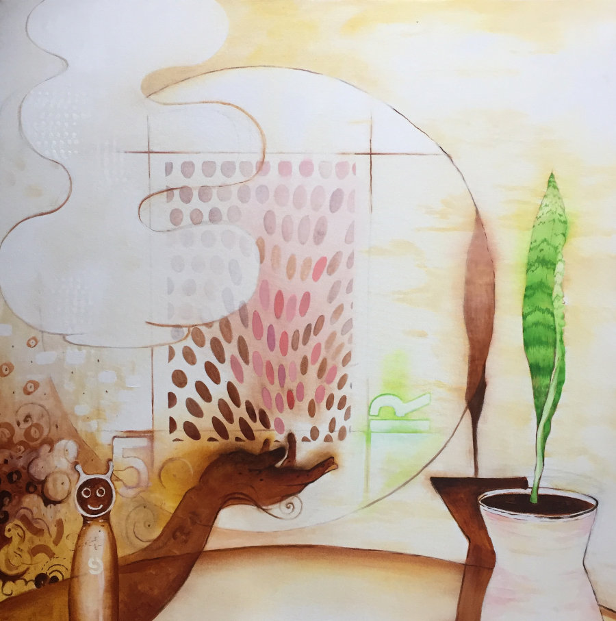 Curtain aside is a display of paintings that flourished in that ‘magic’ space — where ideas and thoughts take flight, take shape and then transferred to the canvas. The viewer is invited to push aside the curtain and share a glimpse of my happy struggles with paint.